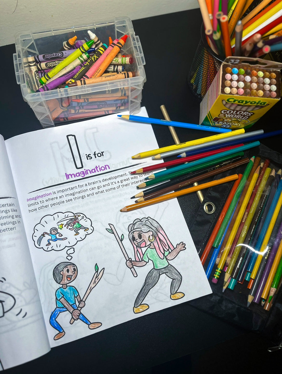 ABC Coloring Book: A creative, interactive resource that gives children space to explore Autism while expressing themselves through art. Each coloring page aligns with the terms and ideas from our Flashcards, combining a calming activity with supportive text to encourage both learning and self-awareness. It’s a fun, engaging way for kids to process and understand each concept while also fostering understanding and positive representation.